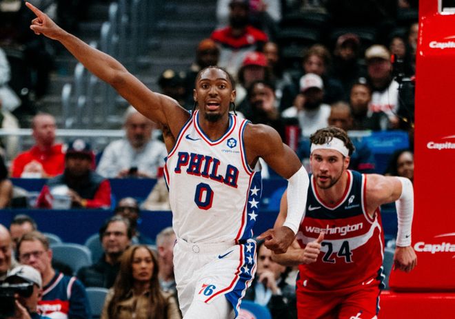 但最意外的球队,是76人,开局四连胜,东部第一!今夏76人用探花签选择的埃奇库姆,场均22.3分5.5篮板5.5助攻,联合马克西场均37.5分3.8篮板8.3助攻,成为联盟最犀利的二人组,双人组合场均得分联盟第一!此外,休赛期被迫签下资质报价的格莱姆斯,和乌布雷搭建起最强侧翼组合,场均都是17.8分入账,这四人组合,将76人拉升到场均得分(129.3分)联盟第三,三分球命中率41.9%联盟第一,场均命中16.3记三分球联盟第三!还有一点很有趣,76人本赛季场均失误只有12.3次,联盟最佳水平!